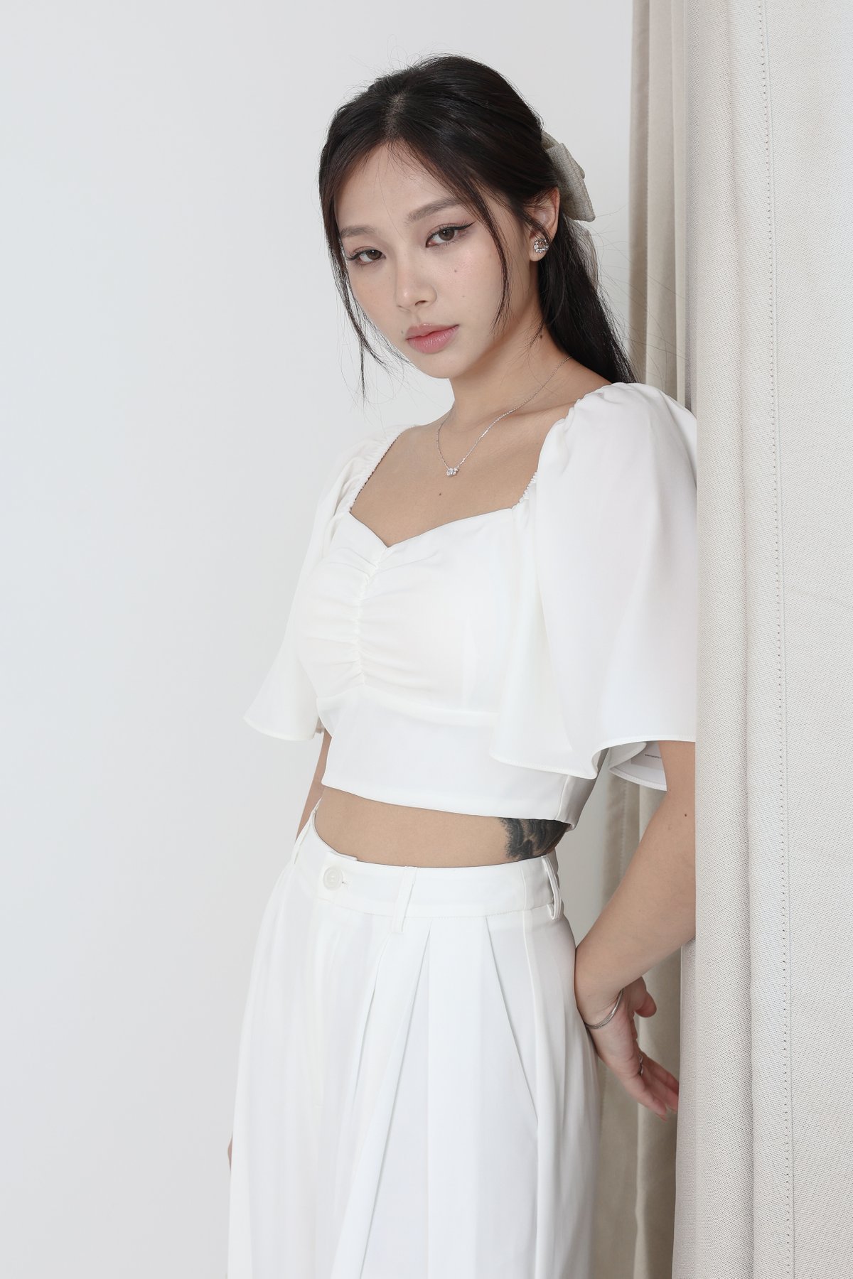*TPZ* DYNASTY FLUTTER SLEEVES TOP 4.0 IN WHITE