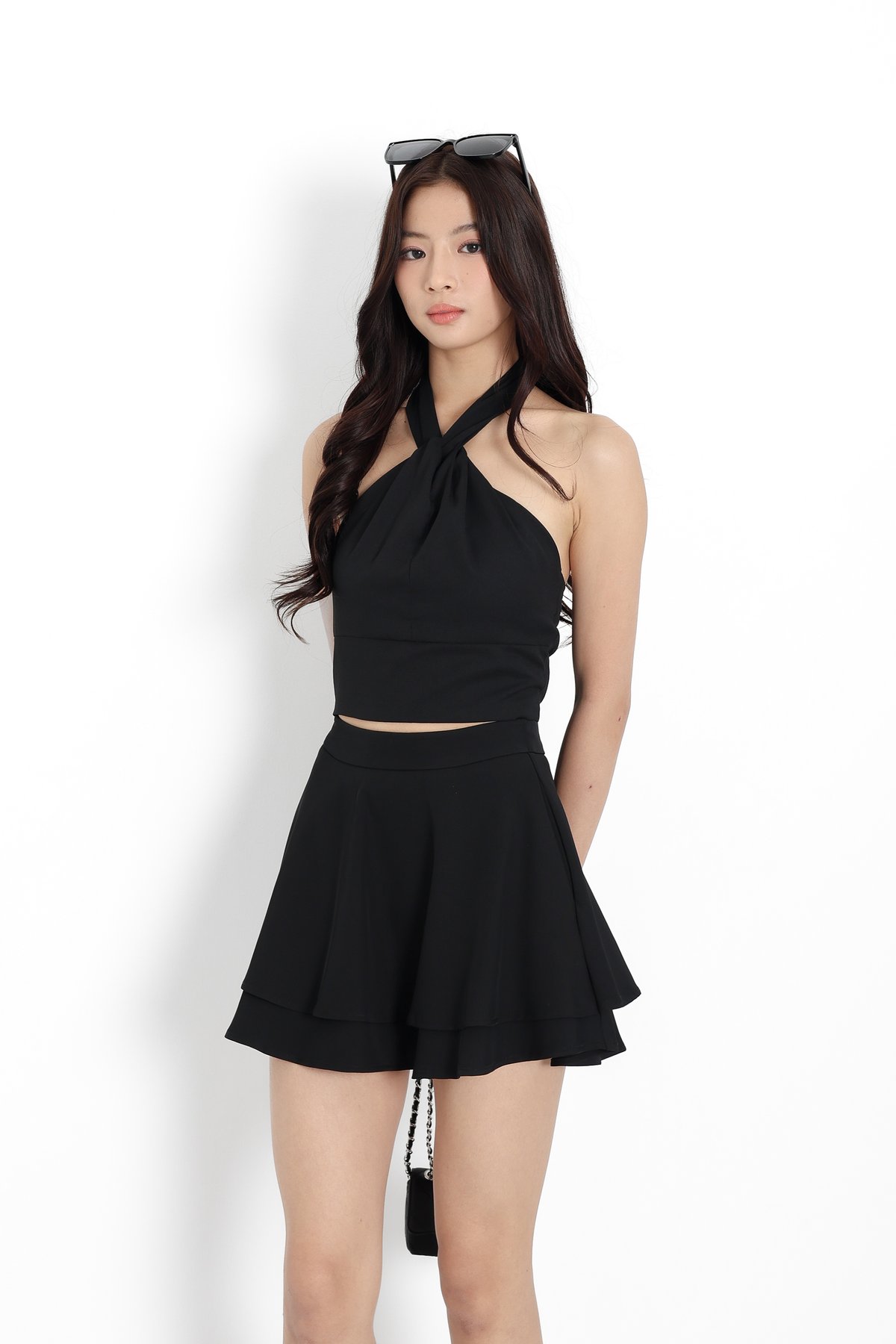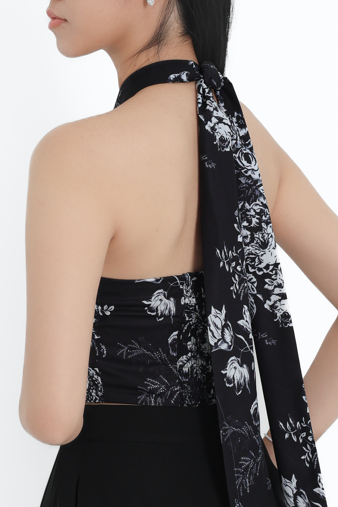 *TPZ* ASTER HALTER RIBBON TOP IN BLACK