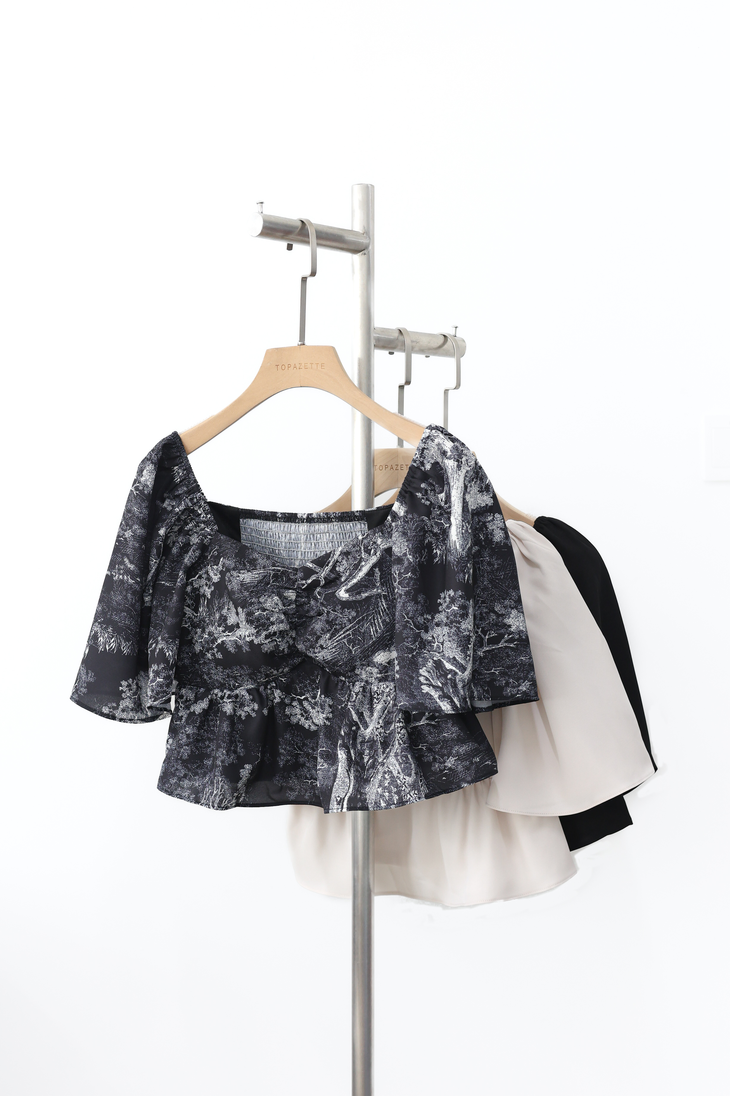 *TPZ* BLAIR FLUTTER SLEEVES TOP IN TOILE DE FORTUNE BLACK