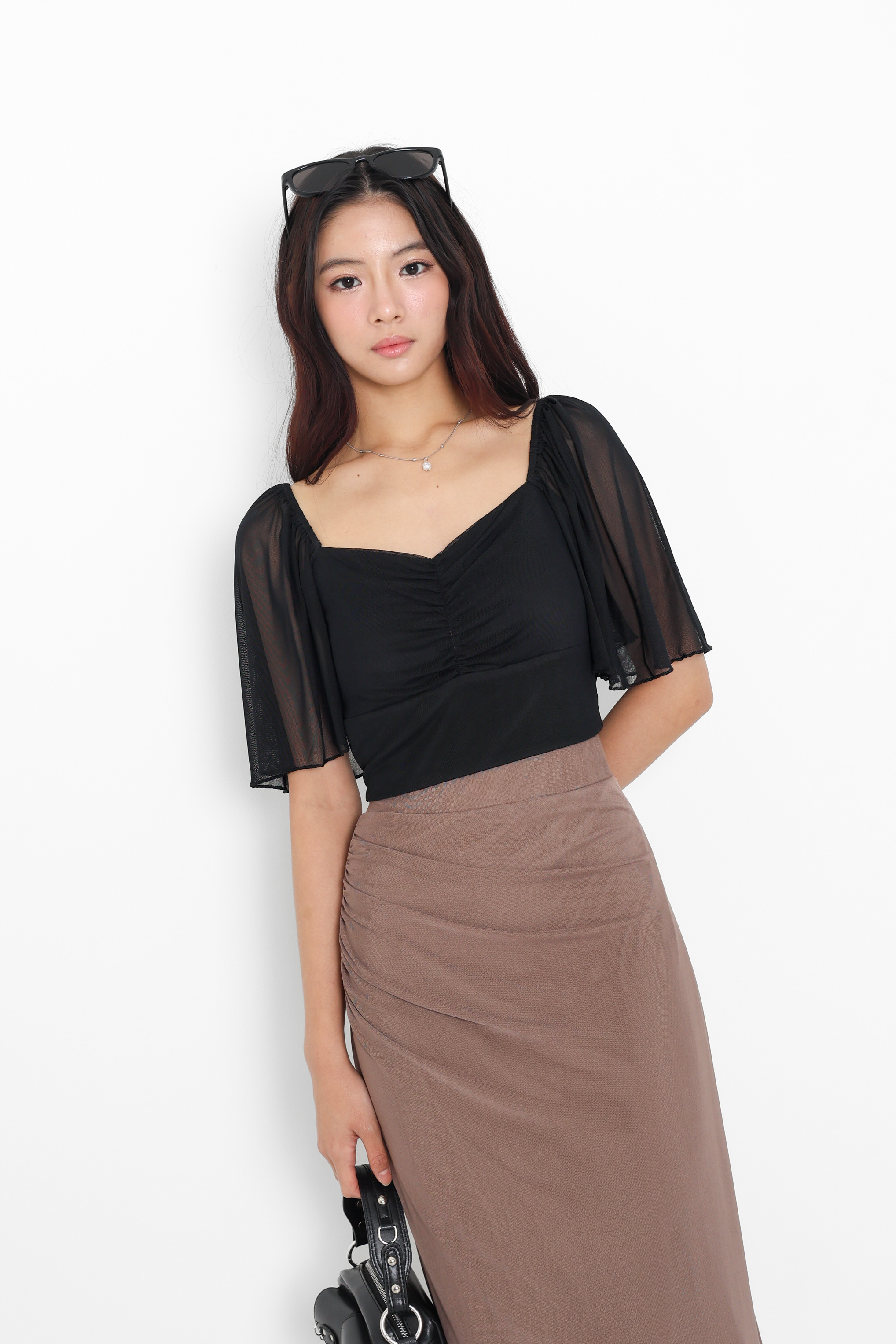 *TPZ LUXE MESH* DYNASTY FLUTTER SLEEVES TOP 5.0 IN BLACK