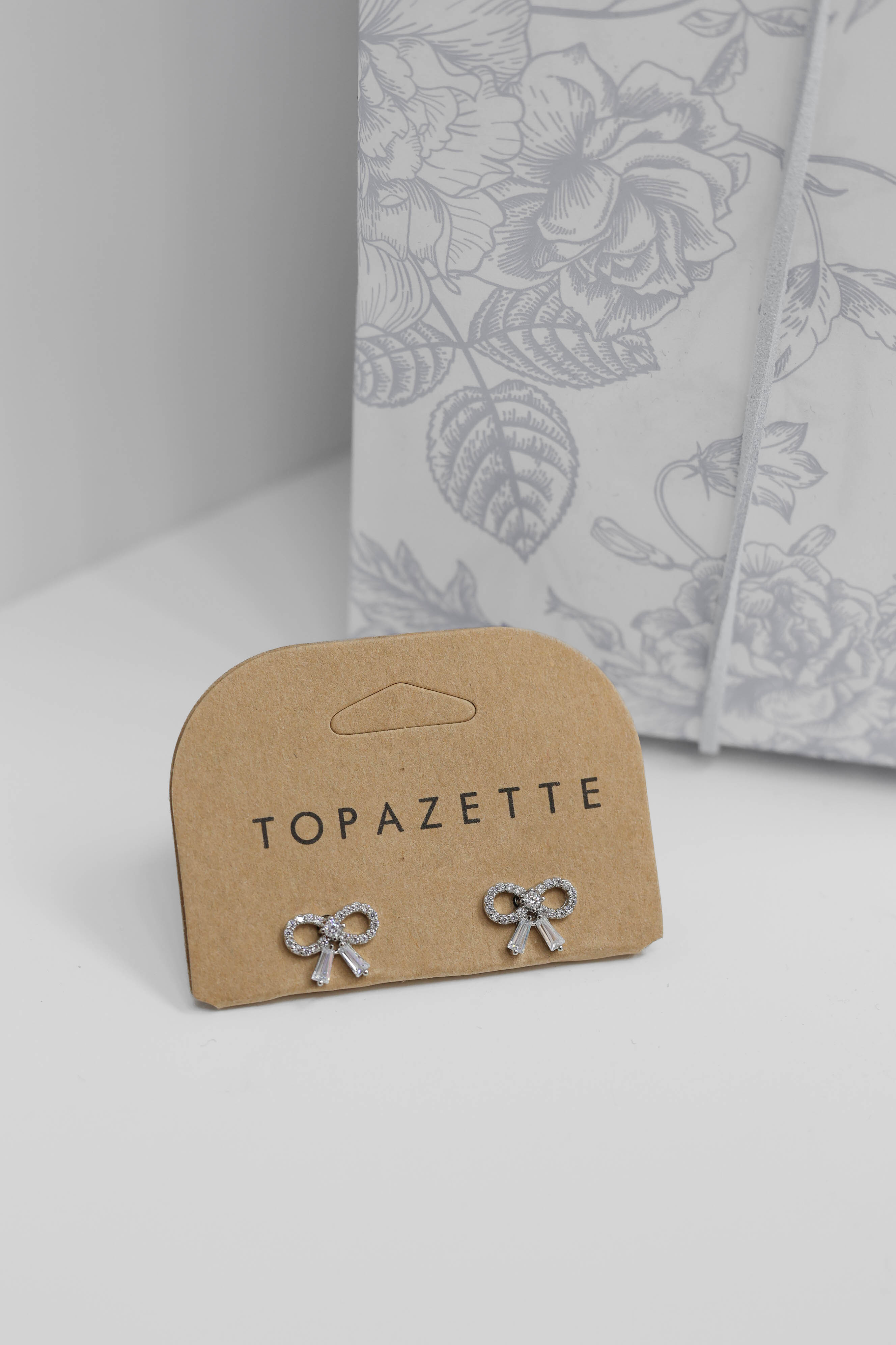 *IMPORTED FROM KOREA* CRYSTAL GEM BOW EAR STUDS