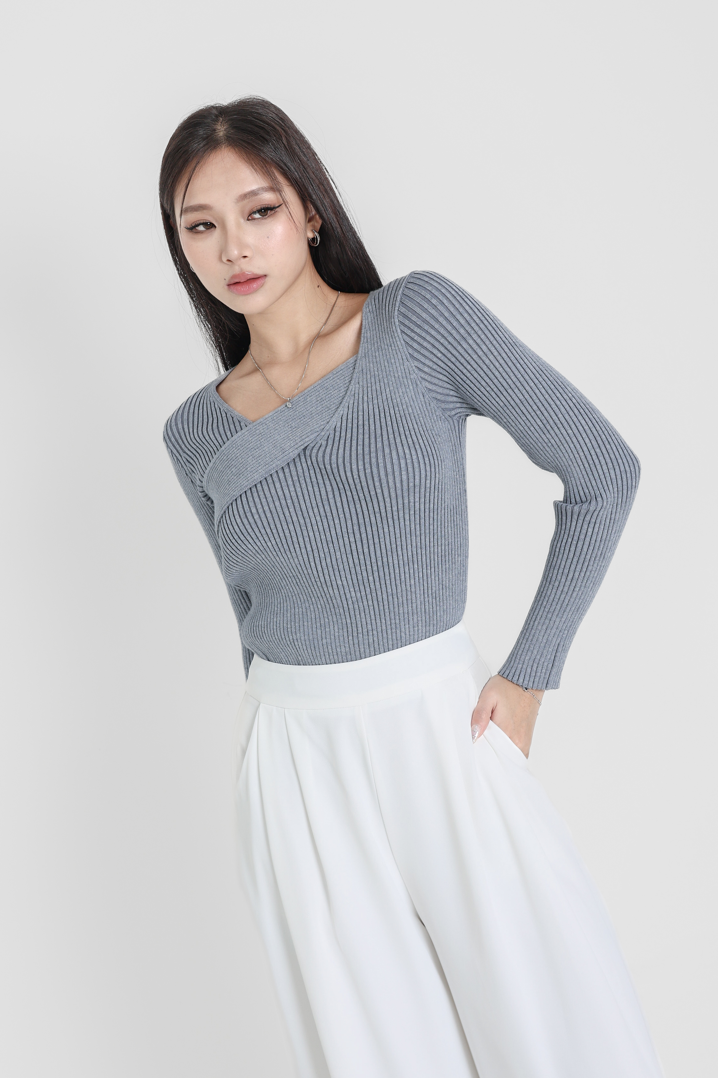 *TPZ* NOELLE CROSSOVER KNIT TOP IN SMOKE BLUE
