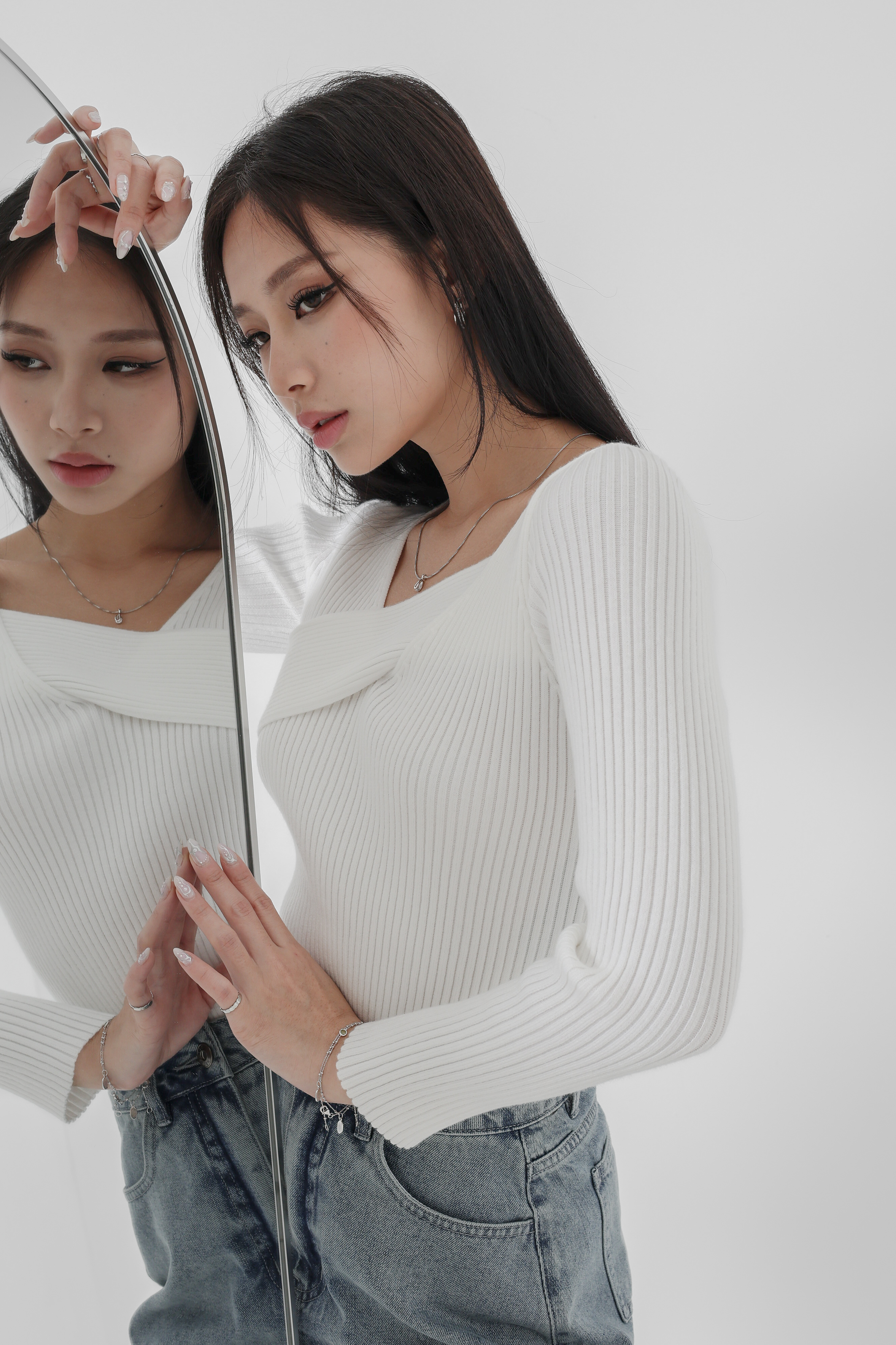 *TPZ* NOELLE CROSSOVER KNIT TOP IN WHITE