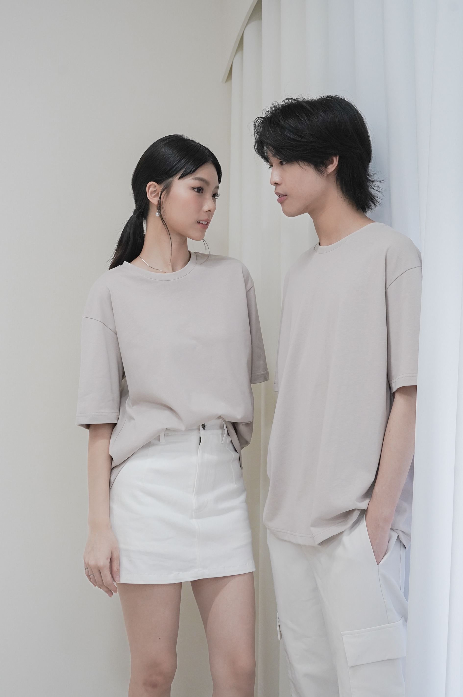 *TPZ* VIBES UNISEX OVERSIZED TEE IN IVORY TAUPE