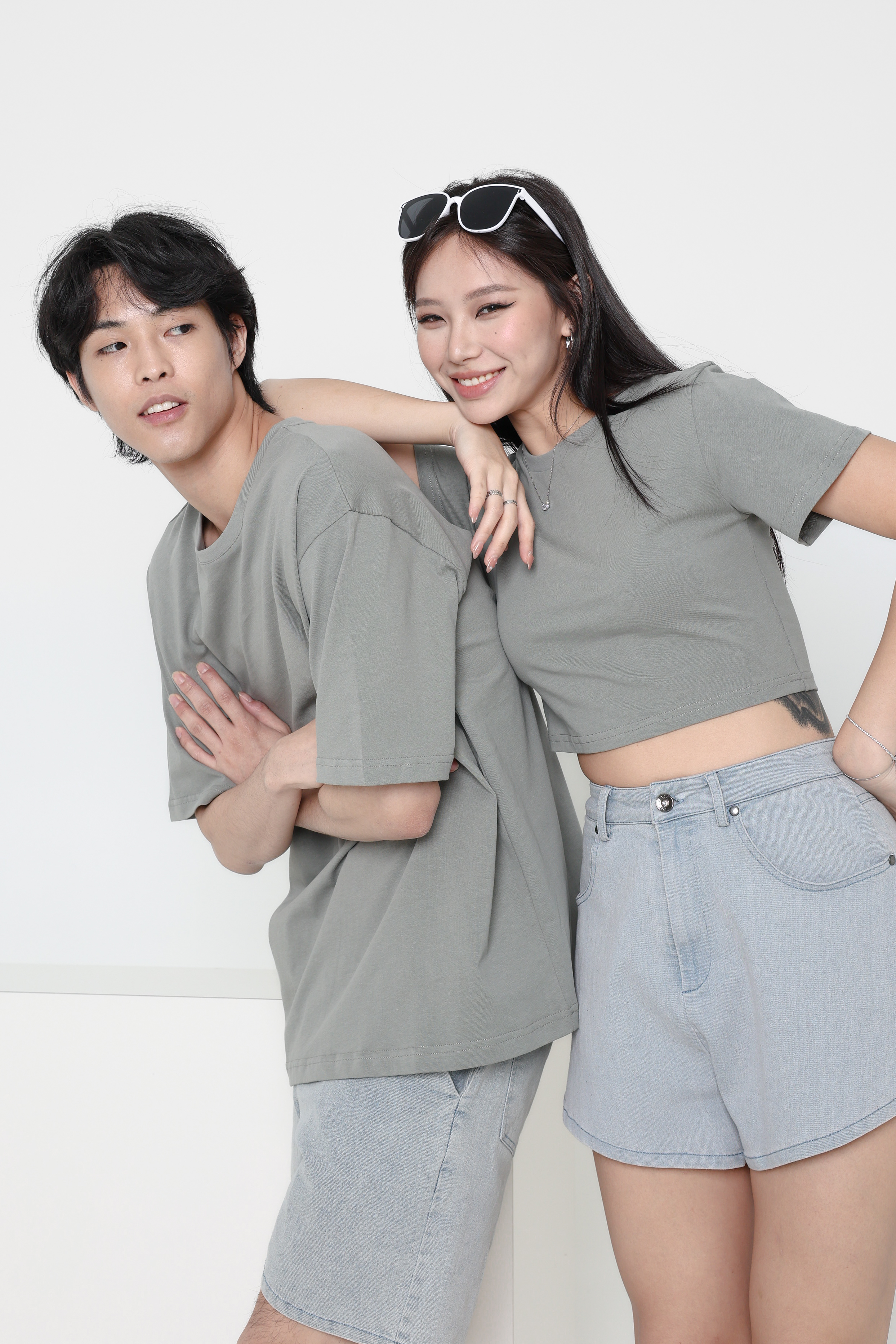 *TPZ* VIBES BOXY TEE IN GUNMETAL GREEN