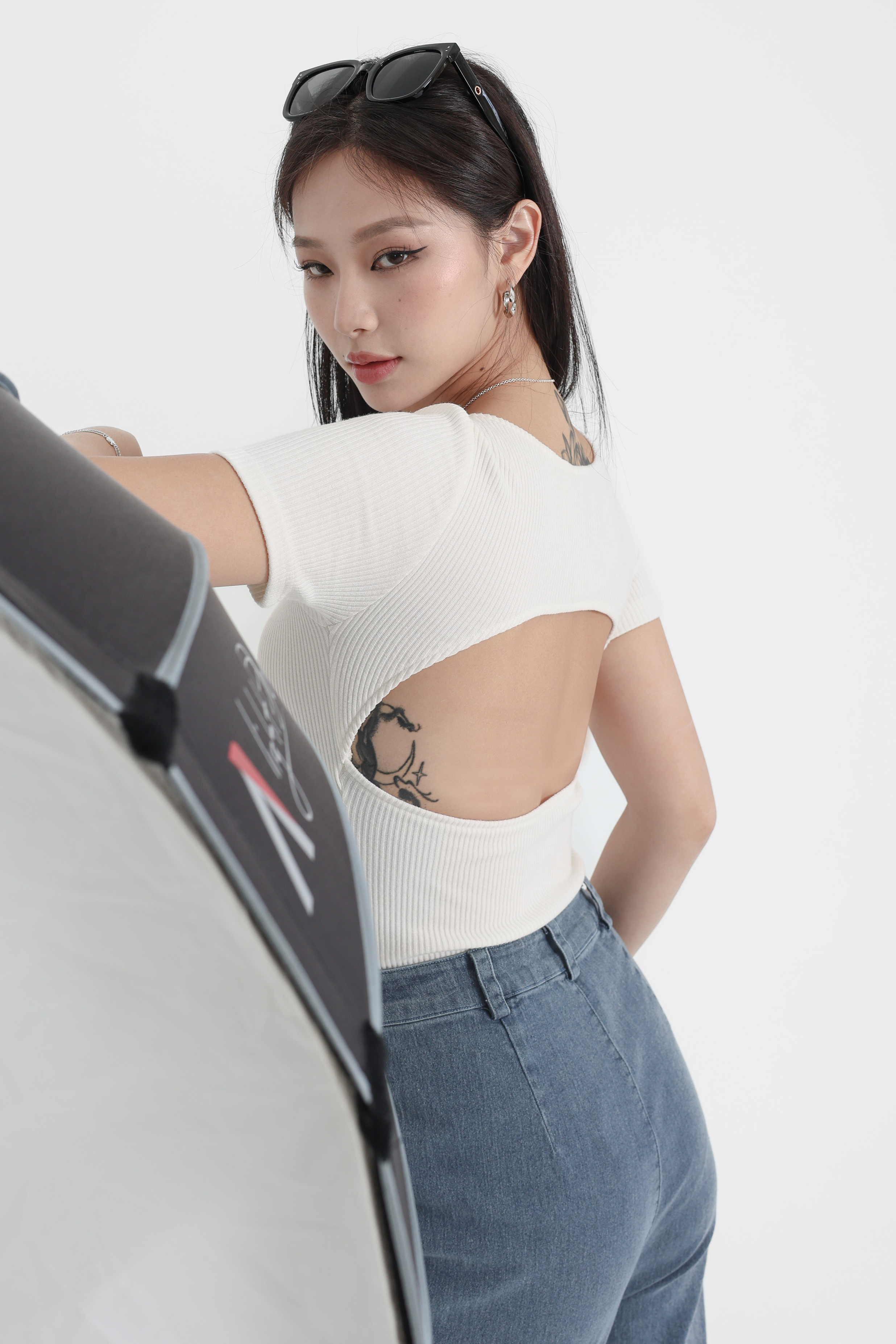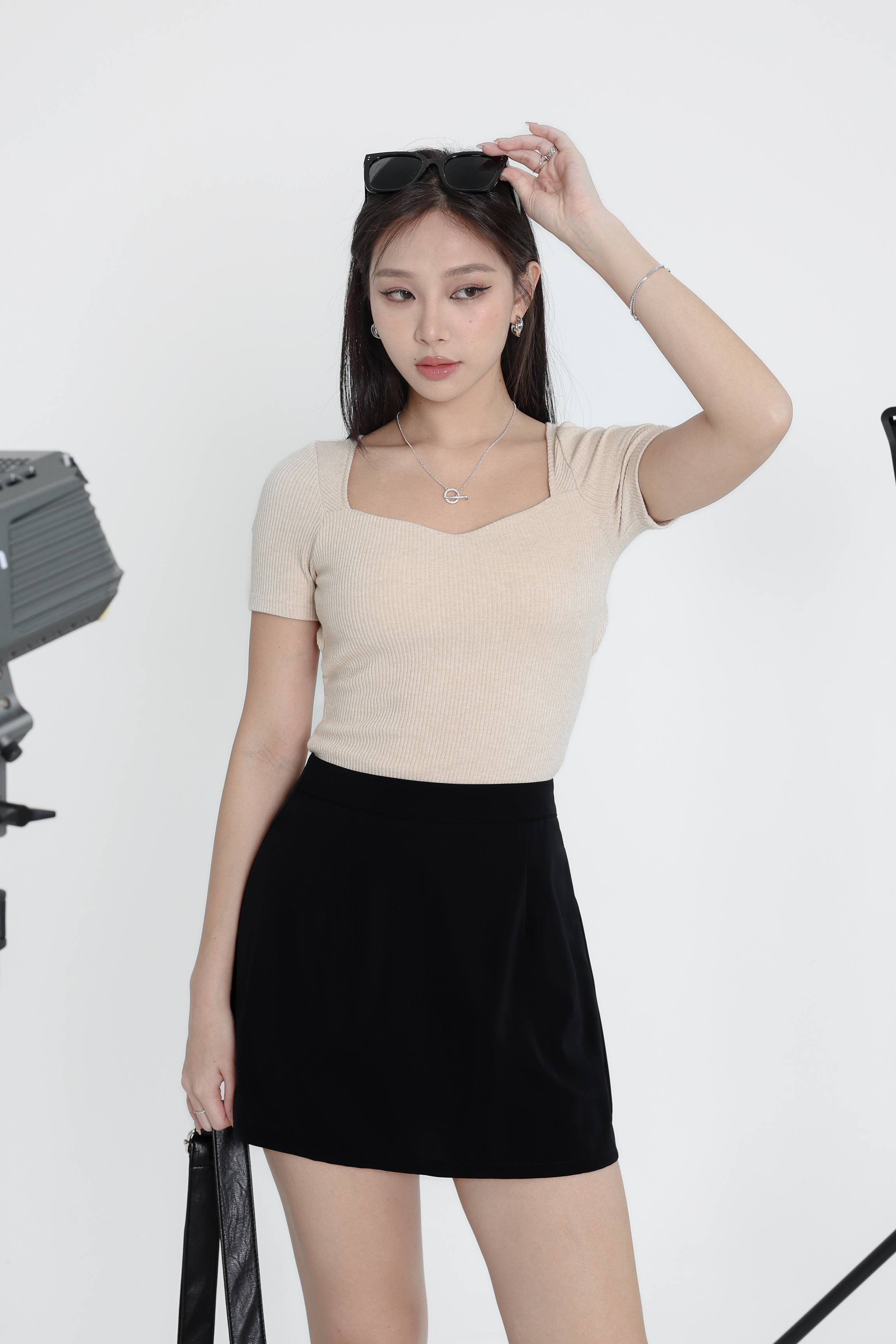 *TPZ* SUN PADDED KNIT TOP IN CREAM BEIGE