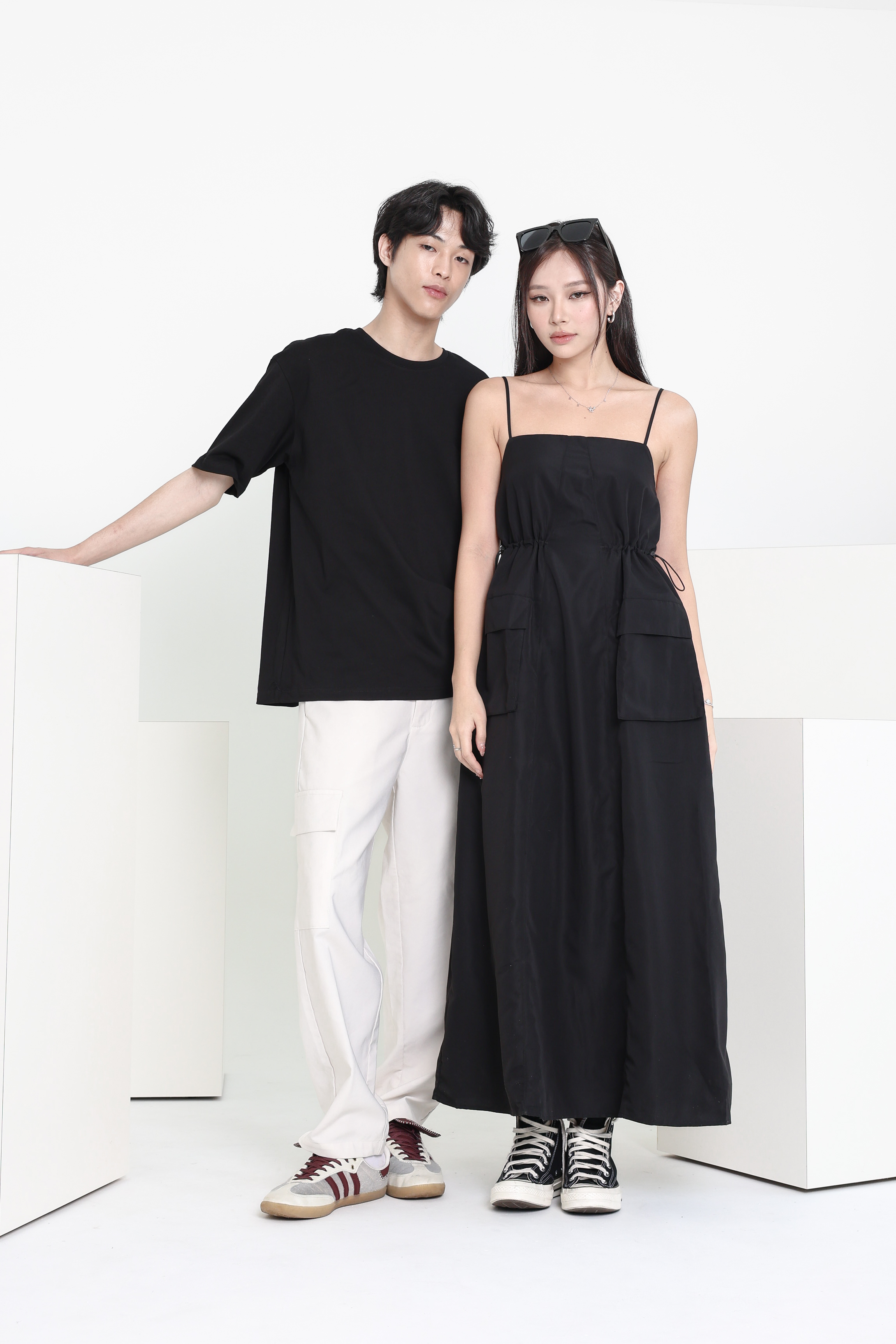 *TPZ* COMMITMENT PARACHUTE MAXI DRESS IN BLACK