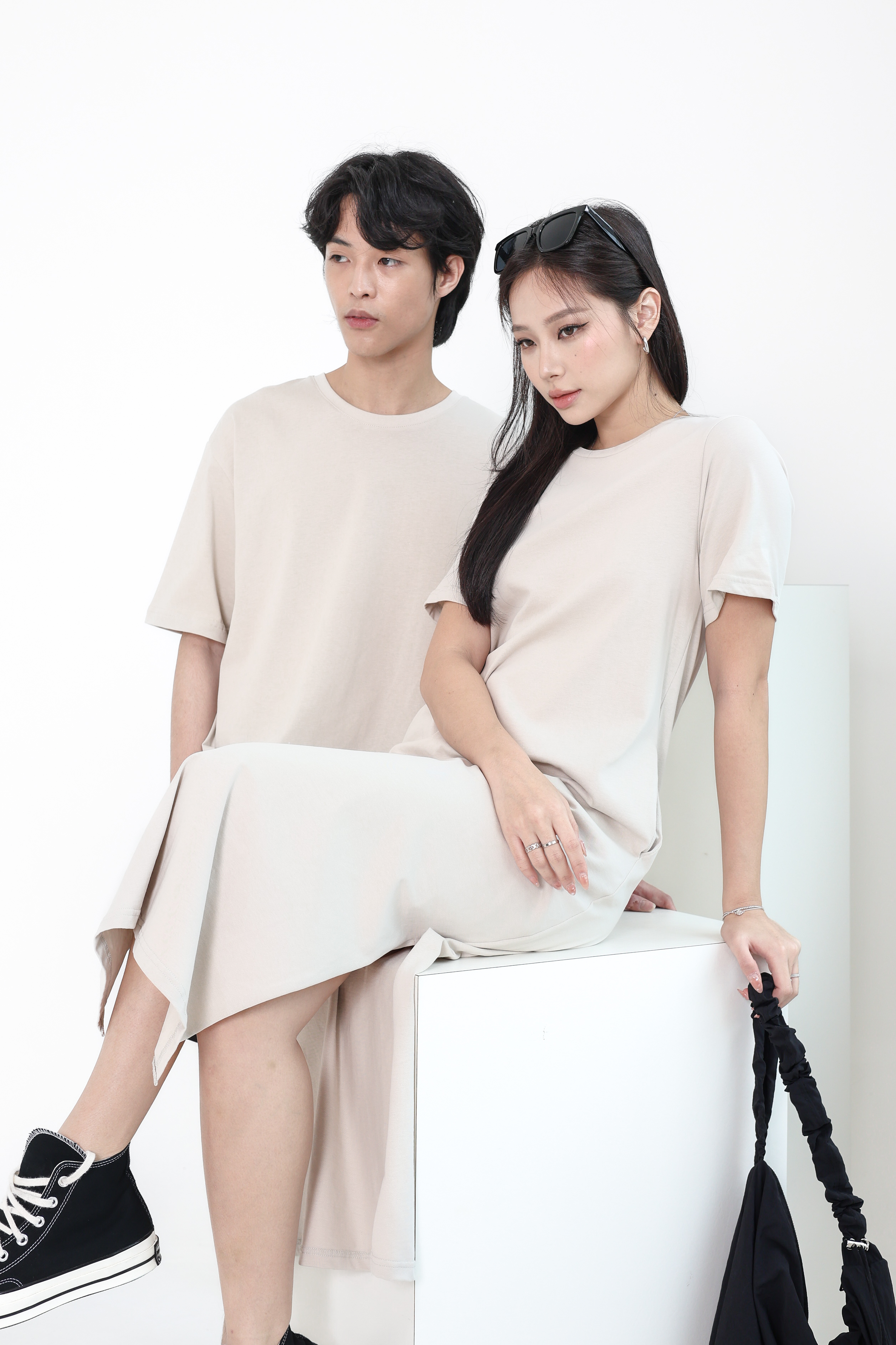 *TPZ* REVERIE TEE MAXI DRESS IN IVORY TAUPE