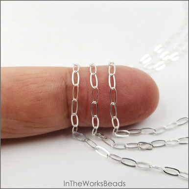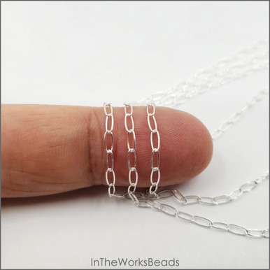 Description Oval Diamond Cut Alternating Chain. 10mm x 20mm Diamone Cut Links with 4.8mm x 5.8mm Plain Link. Made with 19 Gauge Wire. Weighs 5.9 grams per foot. Price per foot. Made in Italy Extra Information Material: Sterling Silver Style: Long and Short Wire Texture: Diamond Cut Bulk Savings: 5ft - 10% off | 15ft - 15% off 60ft - 20% off